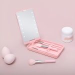 El conjunto de brochas y el espejo LED encajan perfectamente en tu bolso, así que puedes retocar tu maquillaje con facilidad dondequiera que te lleve el día.